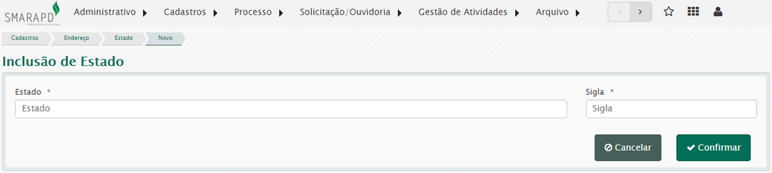 O cadastro de estado é necessário para a inclusão de cidades no sistema.