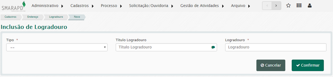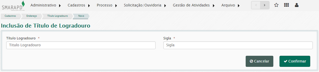 O cadastro de título é necessário para a inclusão de logradouros no sistema.
