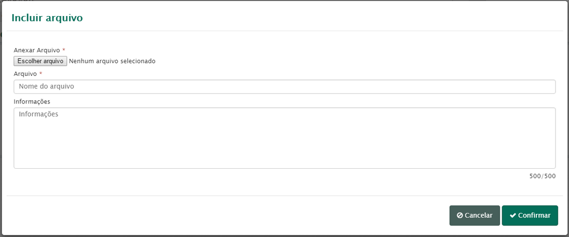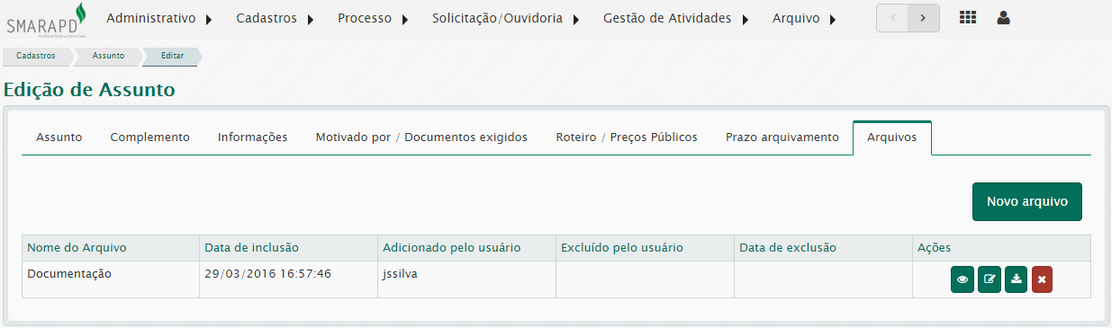 Na inclusão de um arquivo preencha, no mínimo, o nome do arquivo e o arquivo digital a ser associado ao assunto.