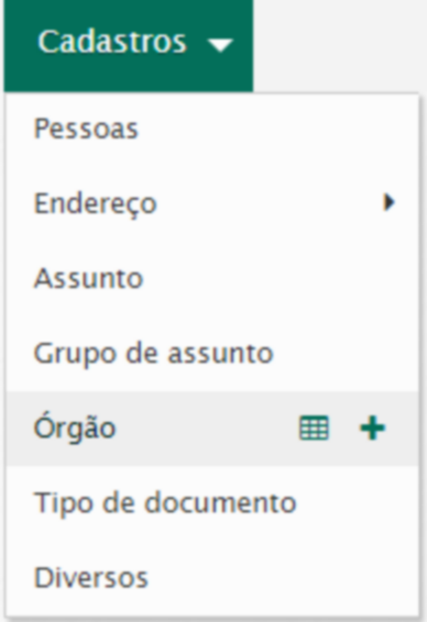 Para incluir um órgão acesse Cadastros / Órgão / Novo.