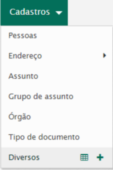 Para incluir registros na tabela diversa, acesse Cadastros / Diversos / Novo.