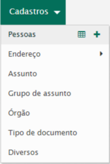 A inclusão de pessoas no sistema pode ser feita através do menu Cadastros / Pessoas / Novo.