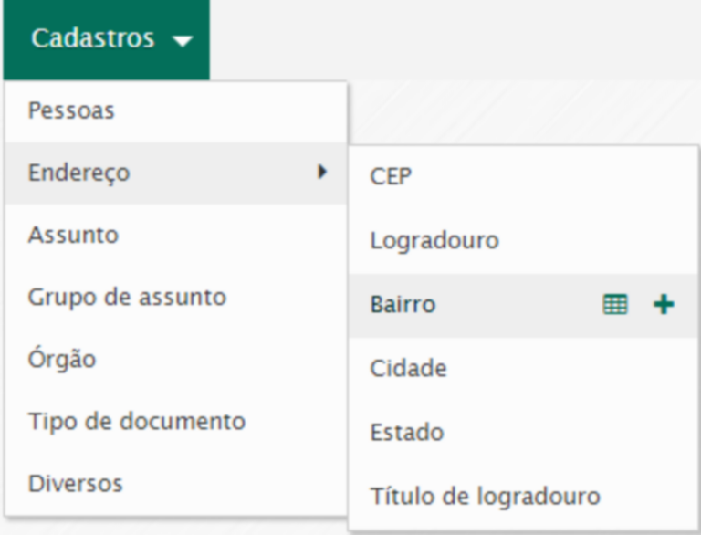 O cadastro de bairro é necessário para a inclusão de CEP no sistema.