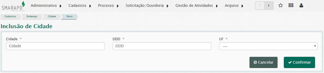 O cadastro de cidade é necessário para a inclusão de CEP no sistema.