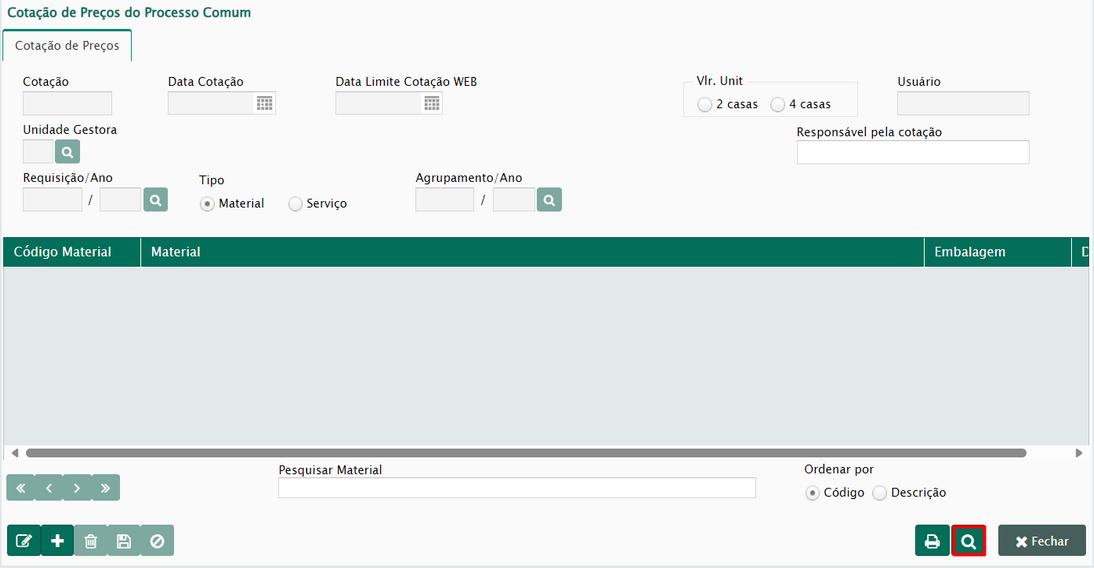 Compras > Pesquisa de Preço > Cotação de Preços