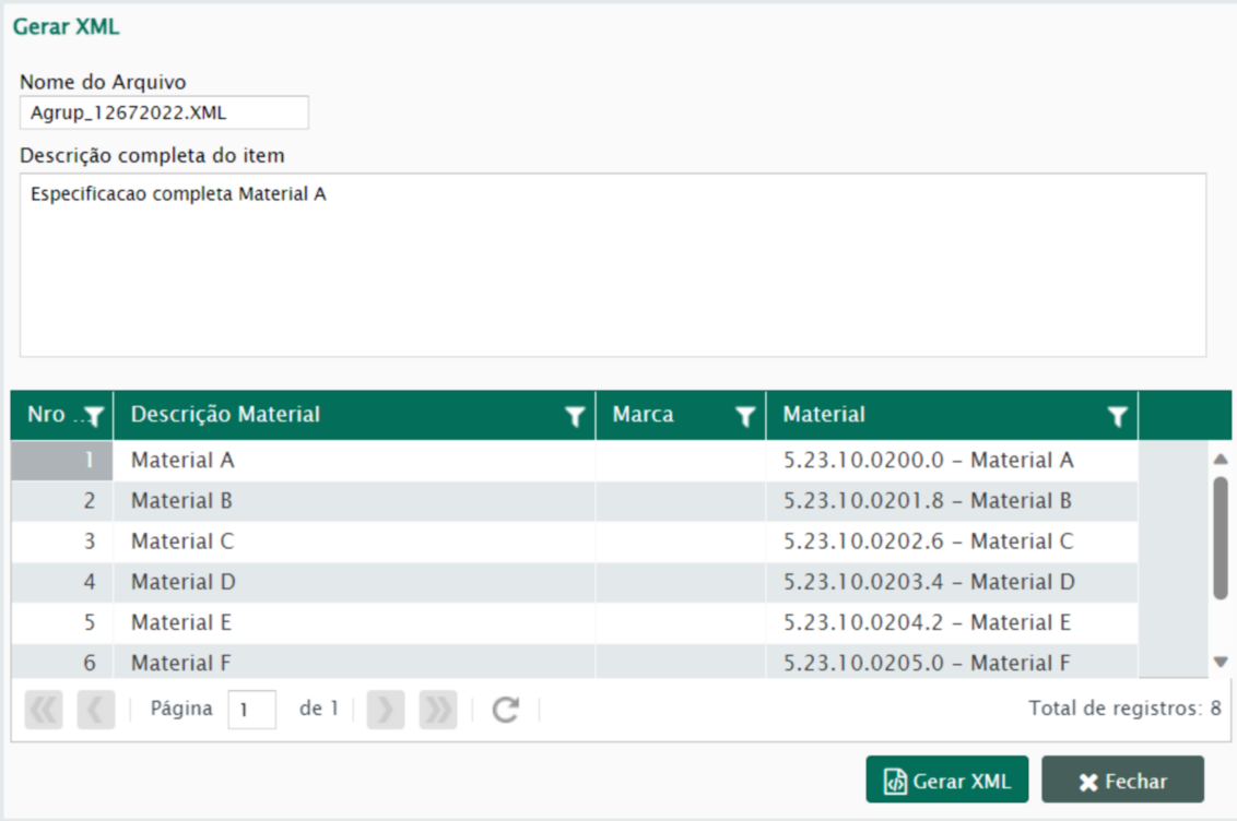 Se for necessário exportar os dados em formato .XML (Figura 19) o sistema exibirá todas as informações da cotação. Após confirmar que todos os itens estão corretamente informados no gerador, clique no botão “Gerar XML” (Figura 20).