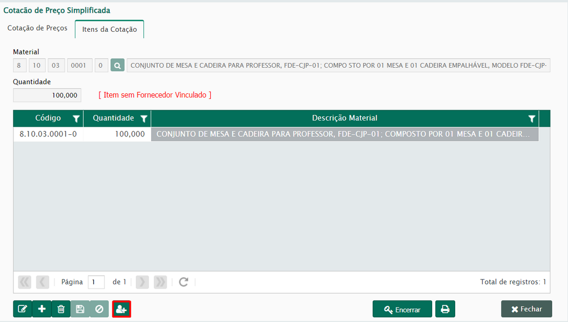 -Botão para Adicionar um novo fornecedor para o material selecionado.