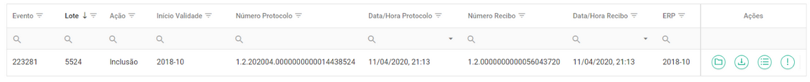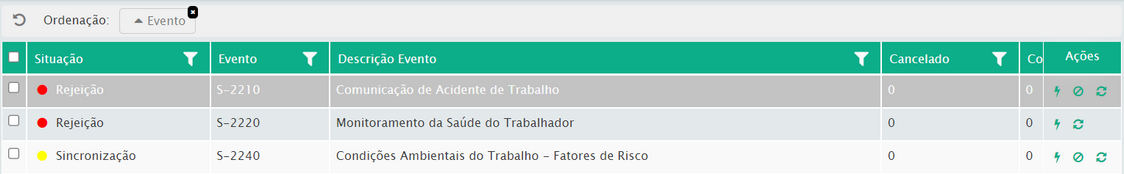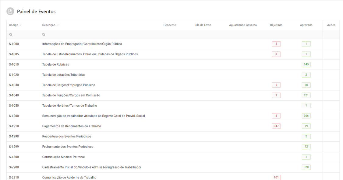 Após o tramite de envio e análise do Governo, o evento é devolvido com o Status de Rejeitado ou Aprovado.