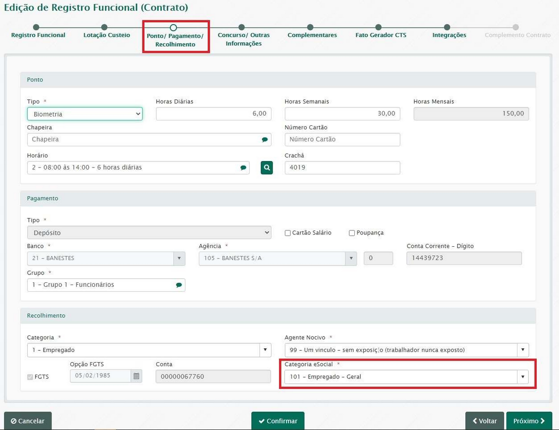 Figura 1 – Contrato de Trabalho – Categoria eSocial