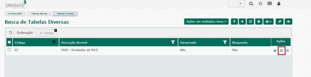 Figura 5 – Código 53 de Tabelas Diversas – Acesso aos Itens do código