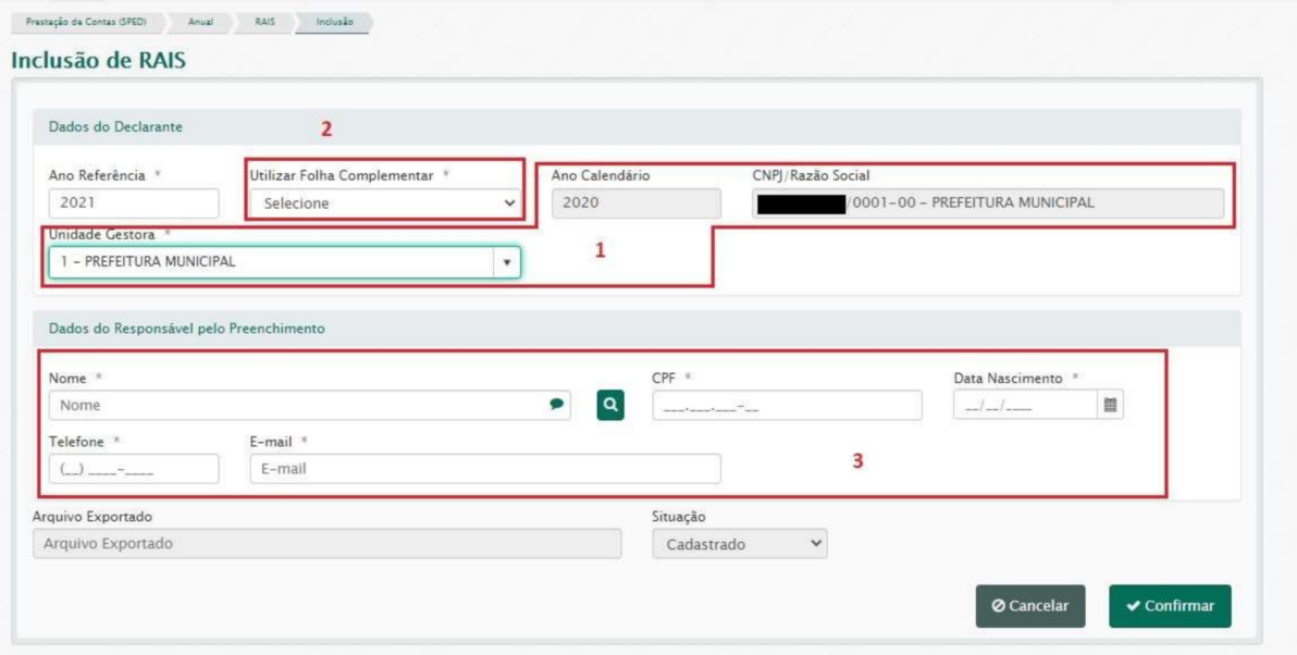 mail com informações do servidor responsável pela RAIS (3). Em seguida, clicar em “CONFIRMAR” para finalizar a inclusão do declarante.