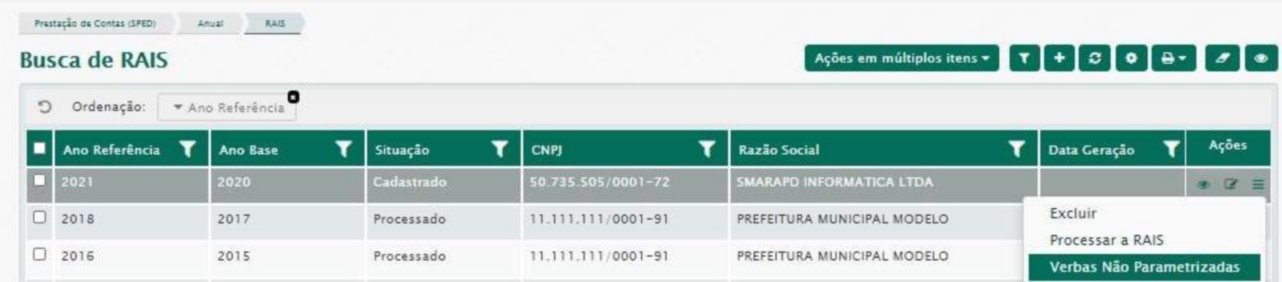 Figura 16 – Verbas Não Parametrizadas RAIS