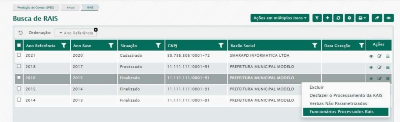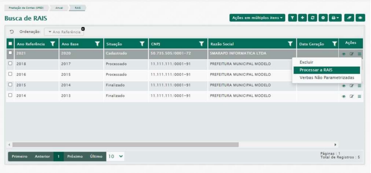 Figura 20 – Lista de Rais – Botão Processar a RAIS
