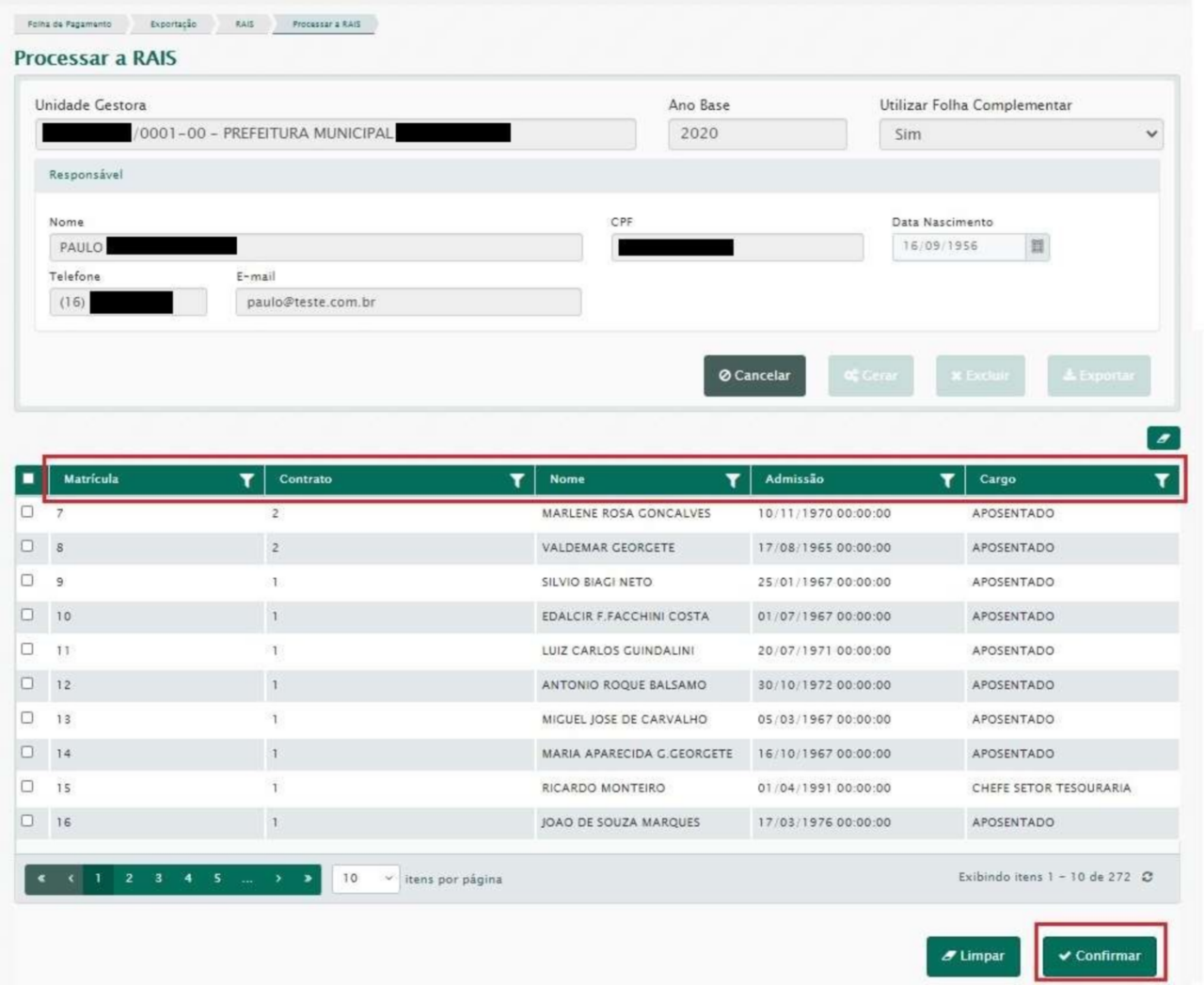 Figura 25 – Visualização de Funcionários Processados RAIS