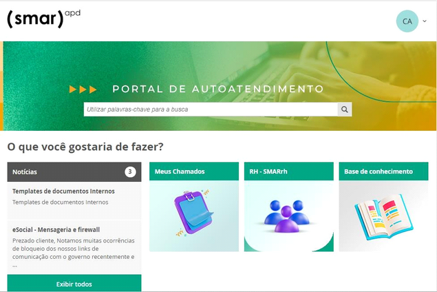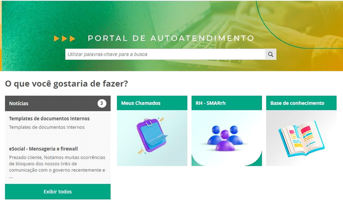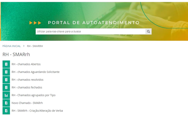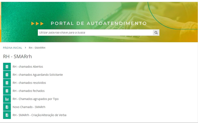 “RH - SMARrh” para realizar a abertura de chamados, seguindo a tela abaixo