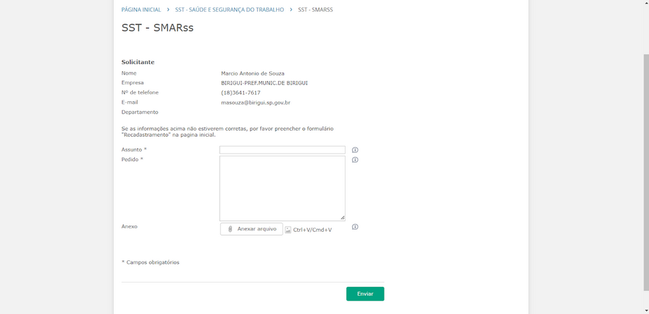Insira as informações necessárias a cerca do chamado, e clique no botão enviar