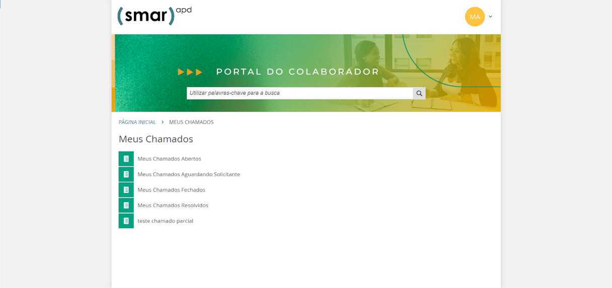 Selecione a opção “Meus Chamados”, para verificar o status dos chamados que foram abertos