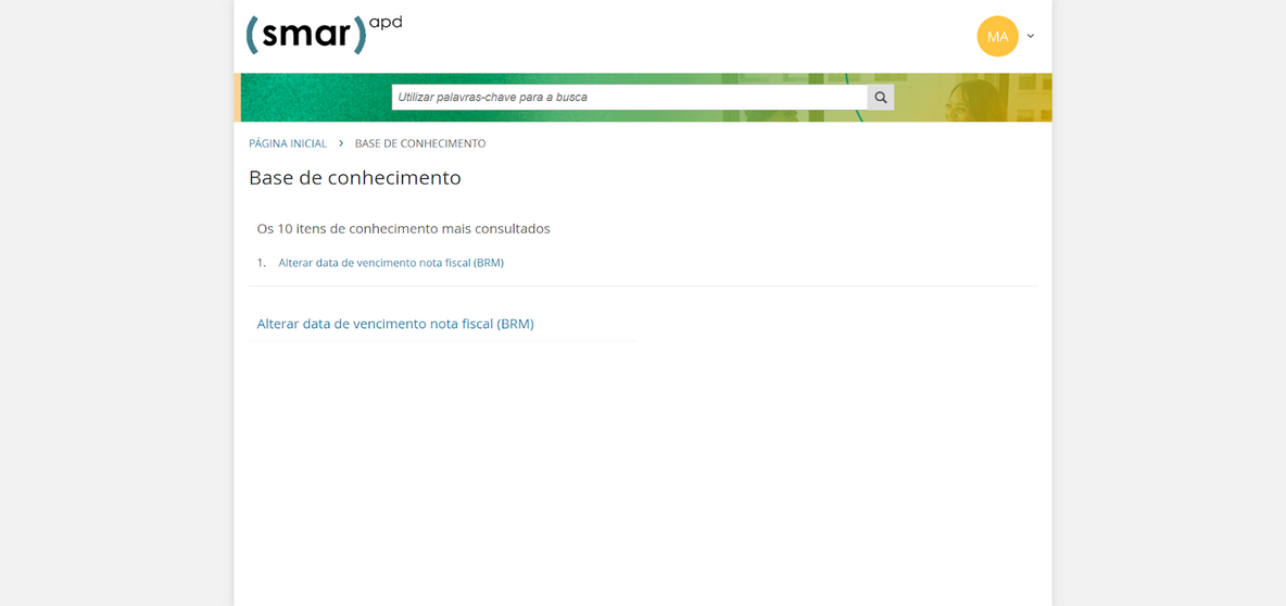 Selecione a opção “Base de Conhecimento”, para que a tela de busca seja visível