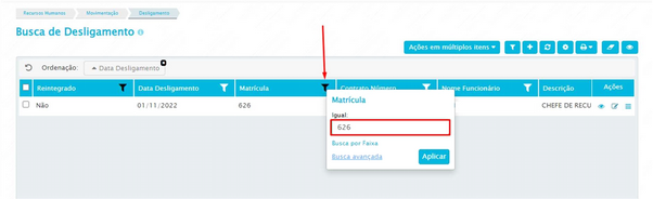 1.1 - Entre na tela de Desligamento e filtre o funcionário desejado: