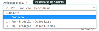 3-Ambiente – indica se os arquivos serão gerados para recepção em ambiente oficial (1 – Produção - somente se for enviar o evento após 08/julho) ou em ambiente de testes (2 – Pré-produção – dados reais - se for enviar o evento antecipadamente para validação), apenas para validação dos dados oficiais.