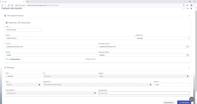 ▪Preencha os campos solicitados conforme nossa ilustração e selecione a opção CONFIRMAR.