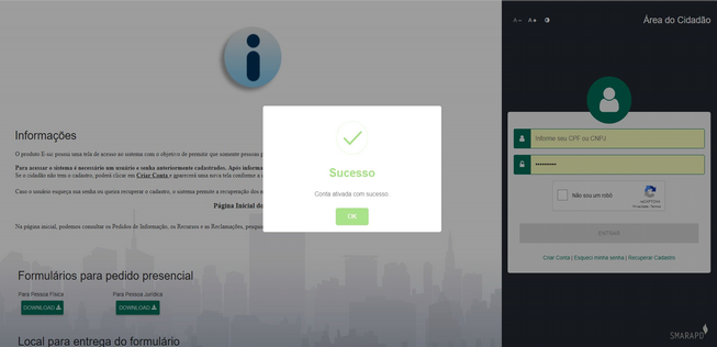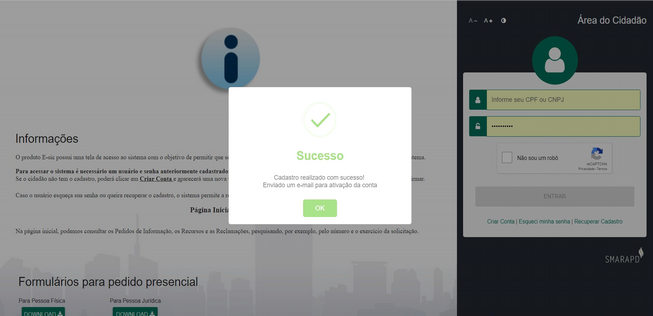 ▪Sua conta no Serviço de Informação ao Cidadão será ativada automaticamente, veja só.