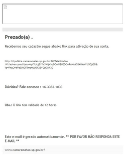 ▪O sistema enviará em seu e-mail um link para ativar a sua conta no Serviço de Informação ao Cidadão.