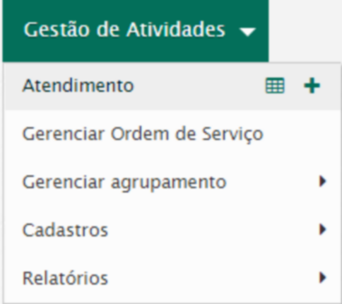 Para registrar uma ordem de serviço, acesse o menu Gestão de atividades / Atendimento / Novo.