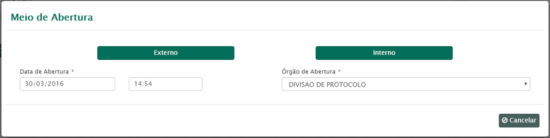 Esse tipo de abertura destina-se a ordens de serviço cujos requerentes são internos.