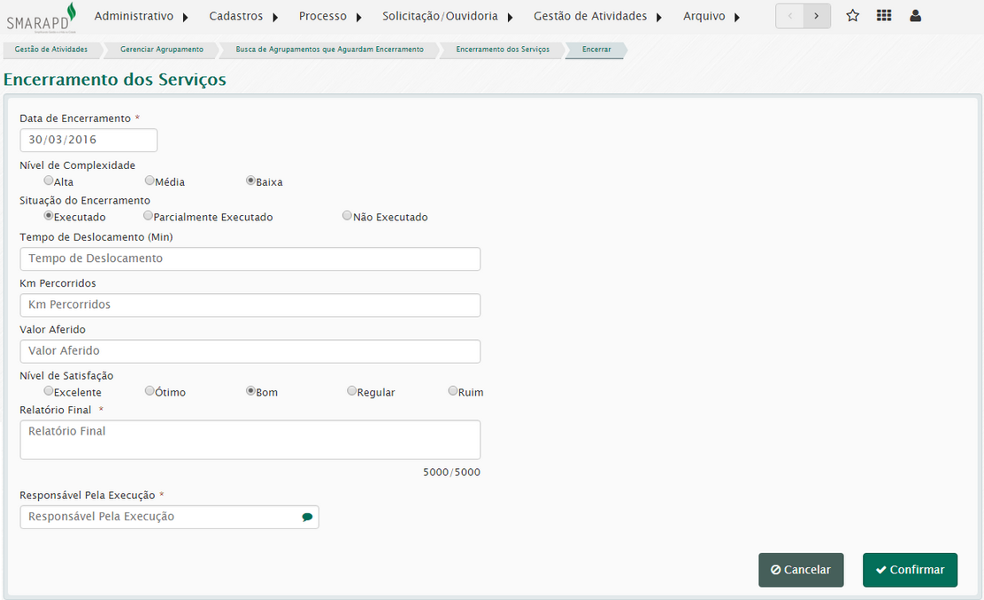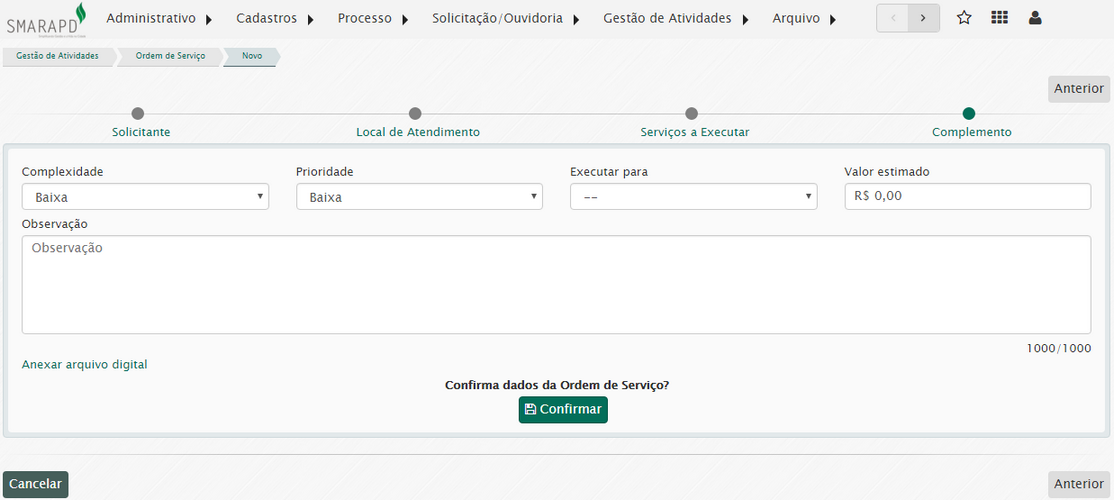 Aqui será necessário informar a complexidade, prioridade entre outros campos complementares à ordem de serviço.