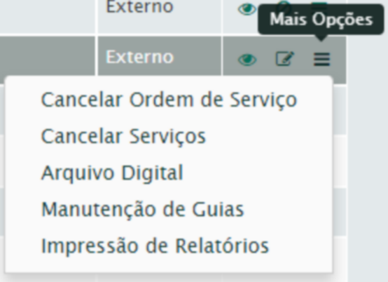 Esta funcionalidade pode ser acessada através das seguintes funcionalidades, na coluna Ações: