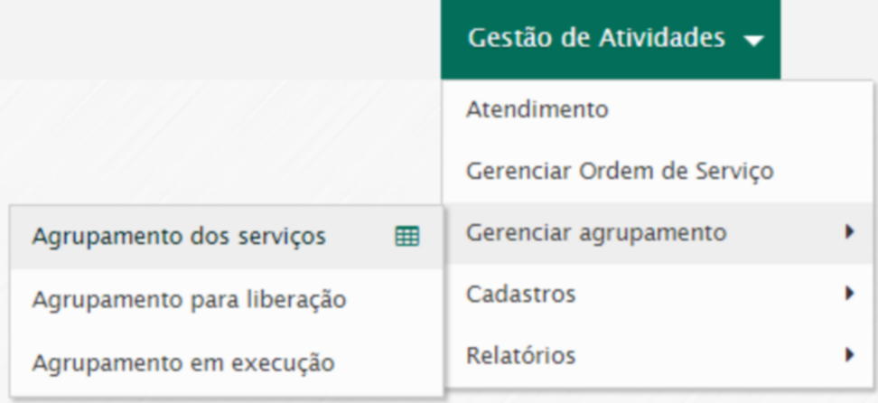•Gestão de atividades / Gerenciar agrupamento / Agrupamento dos serviços