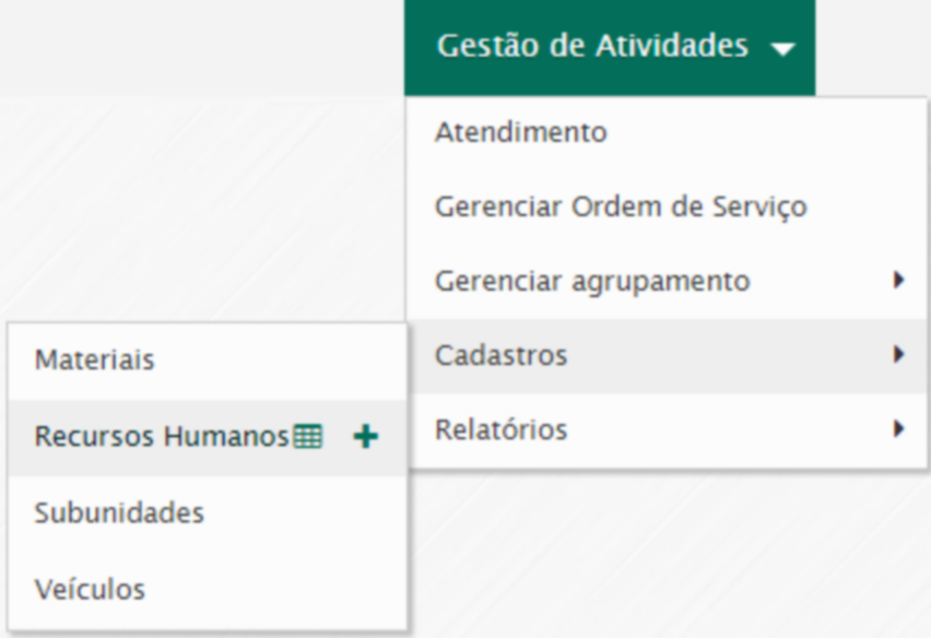 Esta funcionalidade permite cadastrar recursos humanos que executarão os serviços solicitados.