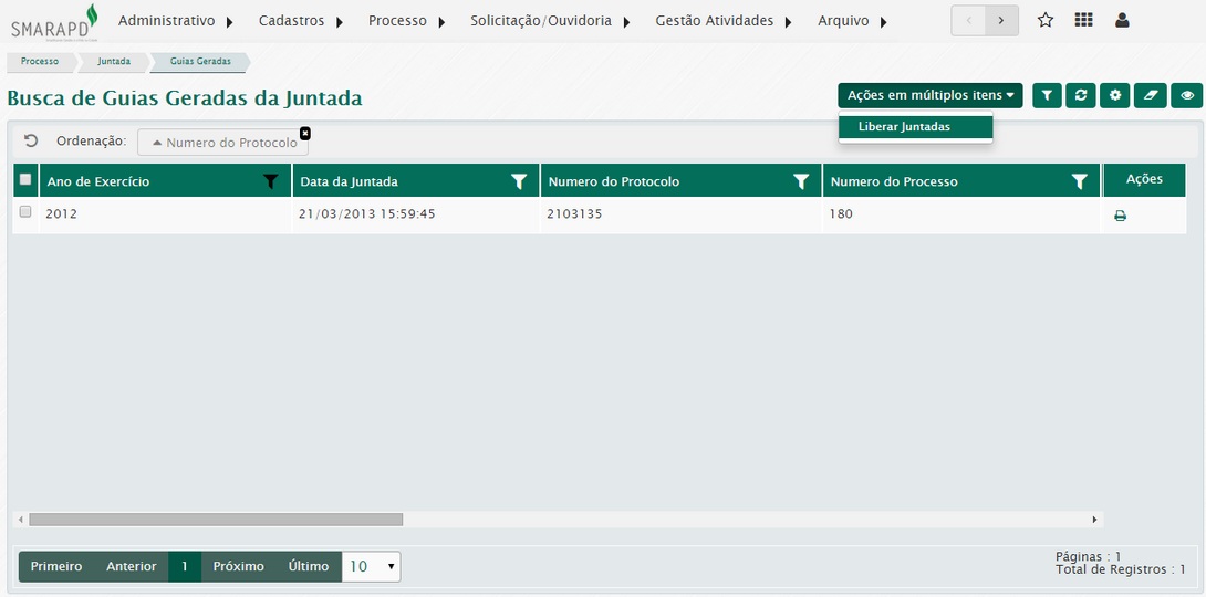 Aqui será possível liberar uma juntada cujo a guia ainda não tenha sido paga, bem como reimprimir as guias geradas no sistema.