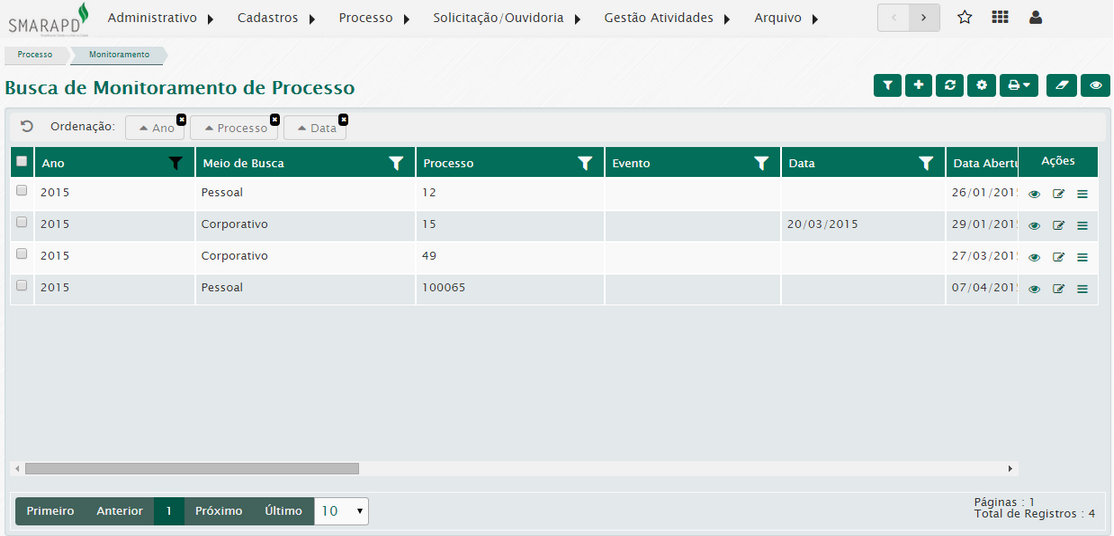 Para monitorar os processos acesse Processo / Monitoramento / Buscar.